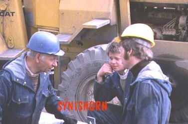 Siglufjarðarkaupstaður; starfsmenn bæjarins skrafa við vegfaranda. Jón