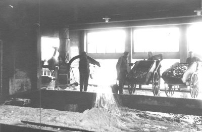 þró til kælingar. Sennilega er maðurinn á myndinni með blásara